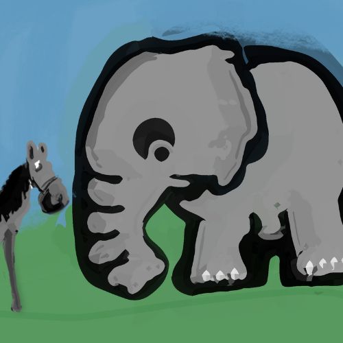 An elephant met a horse. It started boasting about his grandfather.