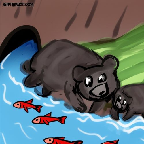Mama Bear, who was big and fluffy and always knew just what to do, gave him a warm nuzzle. "No problem, my dear," she said with a smile. "We'll go to the river and do some fishing! I bet there are lots of yummy fish waiting for us."