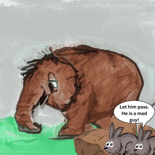 The mad elephant finds immense pleaure in ruining other's peace of mindOne day, as the elephant was walking, he fell into a pit. The pit was dug by some elephant hunters. The elephant cried for help, but nobody did anything to save the elephant from coming out of the pit.